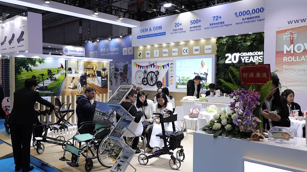 “专区内展出的轮椅、助行器、代步车等产品,均以人体工学设计为核心,搭配高强度轻量化车架、静音防滑轮等实用功能,兼顾安全性、舒适性与便携性,可有效解决行动障碍人群的出行难题。”英科医疗相关负责人表示,产品精准适配养老机构与家庭照护场景,覆盖康复训练、日常出行、居家护理全流程,彰显企业对银发群体与康复人群的人文关怀。