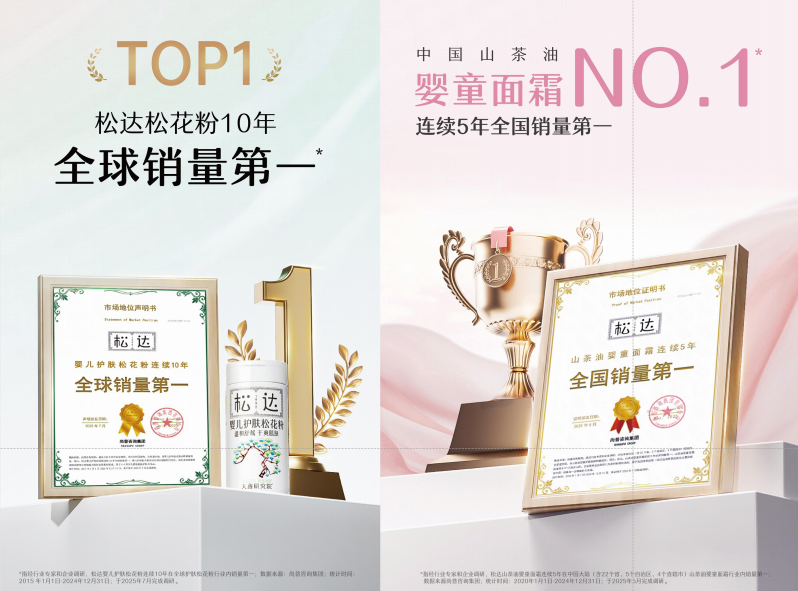 自1992年成立以来,松达始终聚焦婴童功效护肤领域,赢得了市场的广泛认可:婴儿护肤松花粉连续10年全球销量第一、中国山茶油婴童面霜连续5年全国销量第一。这些数据背后,是超2500万妈妈的口碑支持,以及全国数千家专业医院、月子会所、月嫂机构的指定信赖。