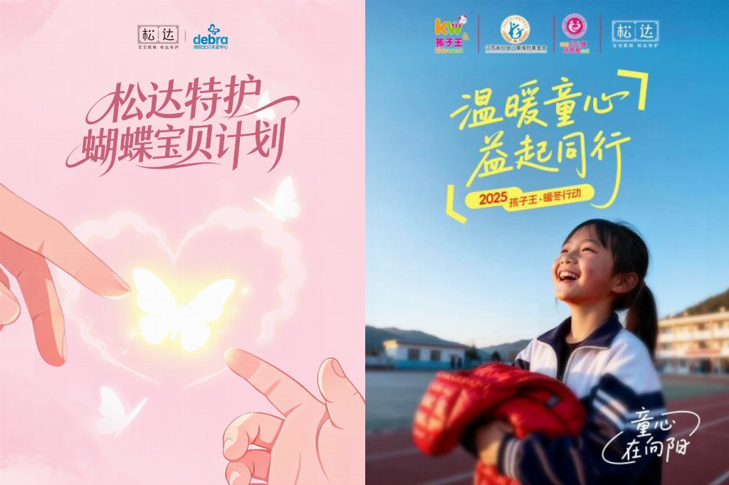 2025年11月松达联合孩子王进行了“2025暖冬行动”公益,向新疆、青海、西藏等地区捐赠物资。近期,其又将目光投向了一个更为特殊的群体——“蝴蝶宝贝”,启动了专项特护计划。这些孩子天生肌肤如蝴蝶翅膀般脆弱,松达通过筹集手术专项基金并捐赠新生特护包,用自己专业领域的力量,为他们极其脆弱的肌肤提供一份尽可能的安心与守护。