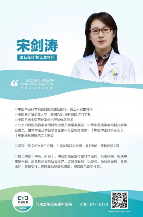 北京爱尔英智眼科医院中医科依托眼专科医疗实力,以宋剑涛主任为学科带头人,搭建老中青相结合的人才梯队。传承创新中医理论,发挥中医“简、便、效、廉”特色优势,同时结合现代医学技术,建立了防治眼科常见病、疑难病的诊疗体系,为各类眼科疾病患者提供精准、有效、个性化的诊疗方案。