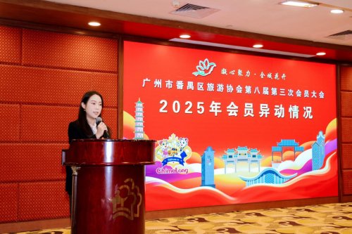 岁末聚力,共赴花开。1月15日,“凝心聚力、全域花开”广州市番禺区旅游协会第八届第三次会员大会在番禺宾馆隆重举行。大会汇聚文旅主管部门领导、行业专家、协会会员及友好商协会代表等,共同回顾2025年历程,谋划2026年发展新篇,携手绘制番禺全域旅游高质量融合发展新蓝图。